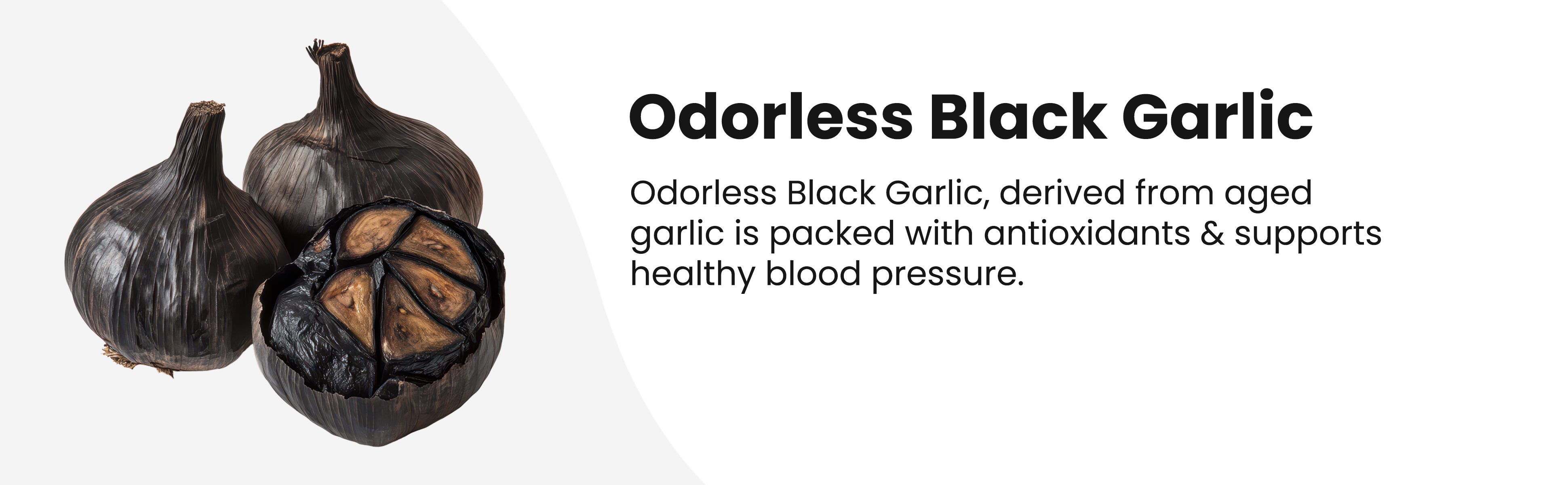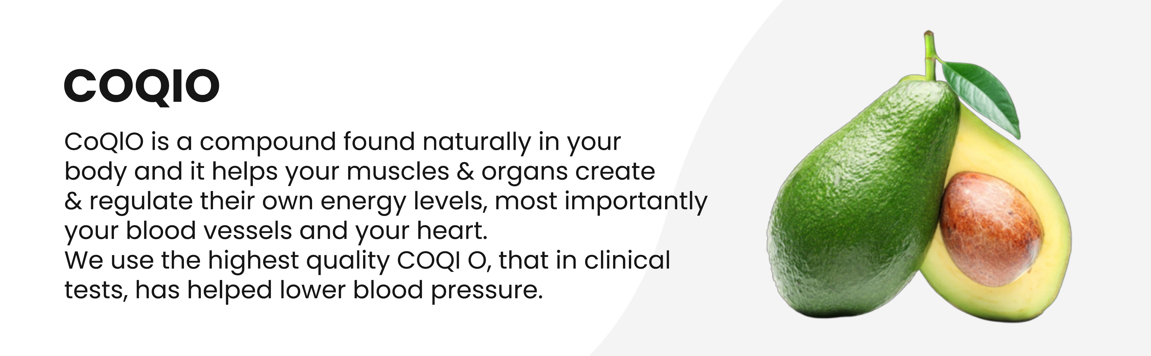 CoQ10, Vitamin D3, L-Theanine, Omega 3 Powder, Beta Cyclodextrin, Black Garlic, Hawthorn Berry, Beet Root.